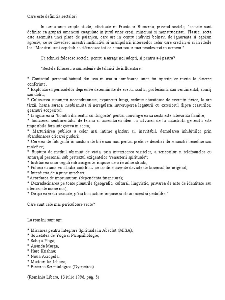 Indraznim sa spunem, chiar o manifestare (epifanie) a tainei bisericii. Definirea termenilor pentru confesiuni religioase creştine în dicţionarele româneşti Ansamblul religiilor la baza cărora se află …Nu exista o definitie general valabila a notiunii de satanism care sa lamureasca in mod exhaustiv toate aspectele legate de acest fenomen.